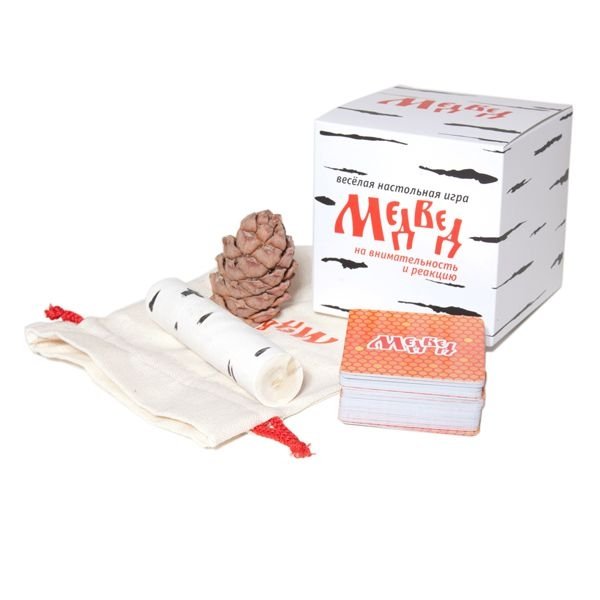 Основной комплект игры полено и стопка из 80 квадратных карт. Кроме них в наборе настоящая кедровая шишка и матерчатый чехол для переноски. Правила просты и понятны каждый игрок выкладывает из своей части колоды по одной карте, когда открываются две одинаковых карты нужно схватить полено. Игра приносит море удовольствия, и тренирует внимание и реакцию.